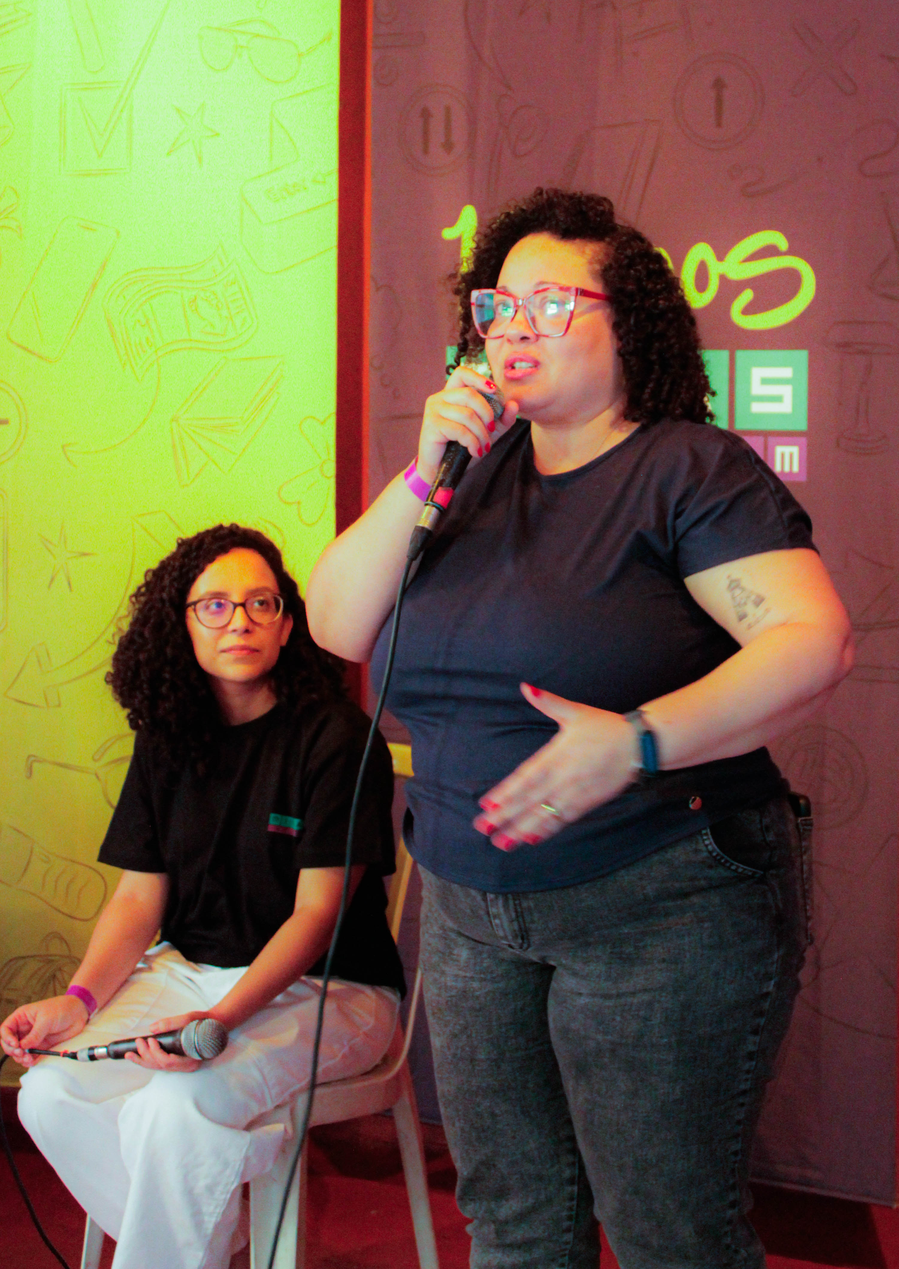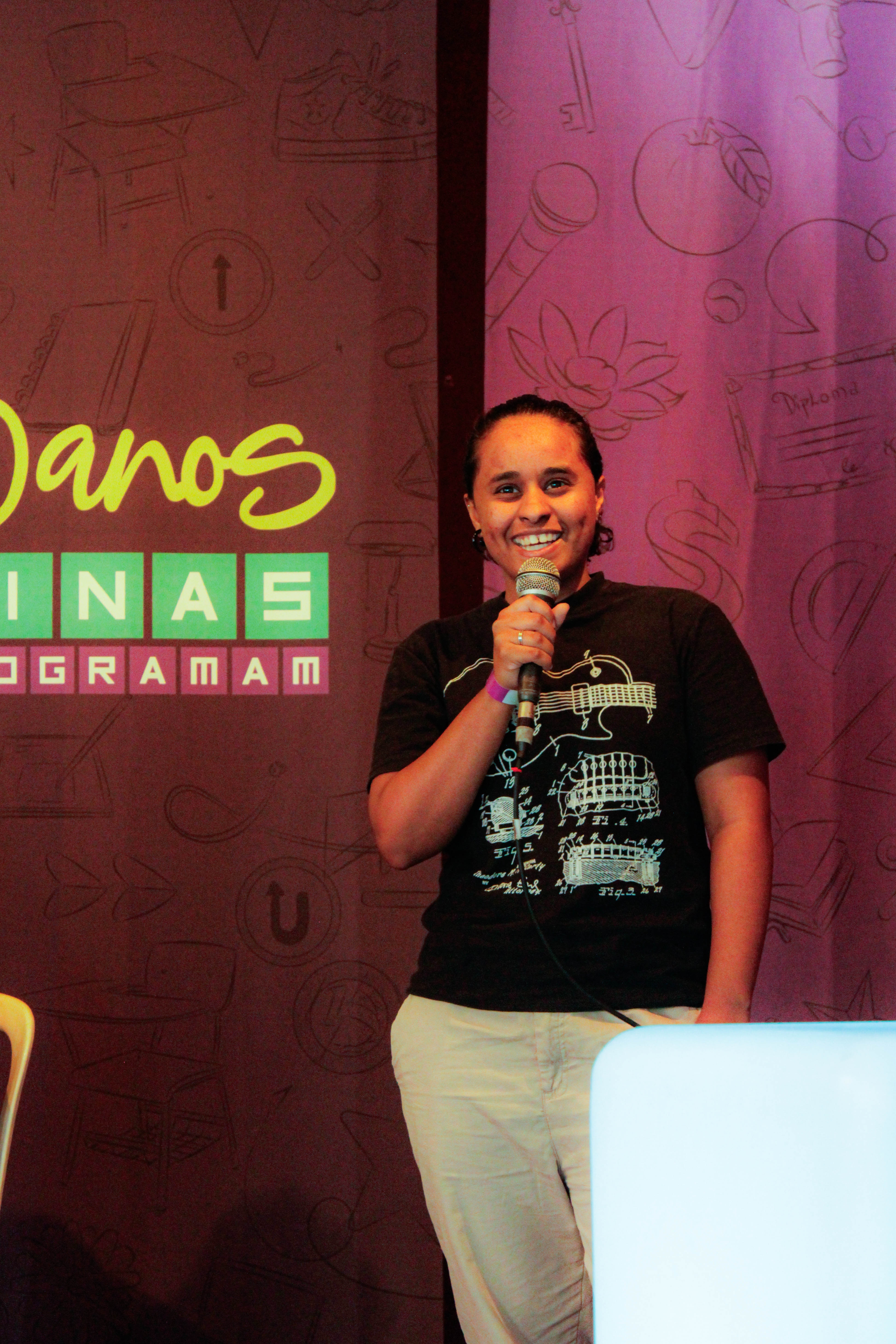 Começamos a comemoração com o que seria a formatura do curso de aprofundamento em lógica de programação para ex-alunas que já haviam concluído nosso curso de introdução à programação. Este curso foi pensado por nossa equipe pedagógica como uma forma de oferecer espaço para nossas ex-alunas aprofundarem seus conhecimentos em lógica da programação e desenvolverem ainda mais suas habilidades. Ao final do semestre, 23 meninas e mulheres negras concluíram o curso. Porém, o espaço acabou virando mais do que isso: foi um momento em que pudemos compartilhar trajetórias, contar sobre desafios, aprendizados e conquistas, ler poesia e incentivar umas às outras. Foi um espaço de escuta, reconhecimento e fortalecimento coletivo do jeito que o Minas Programam acredita e constrói.